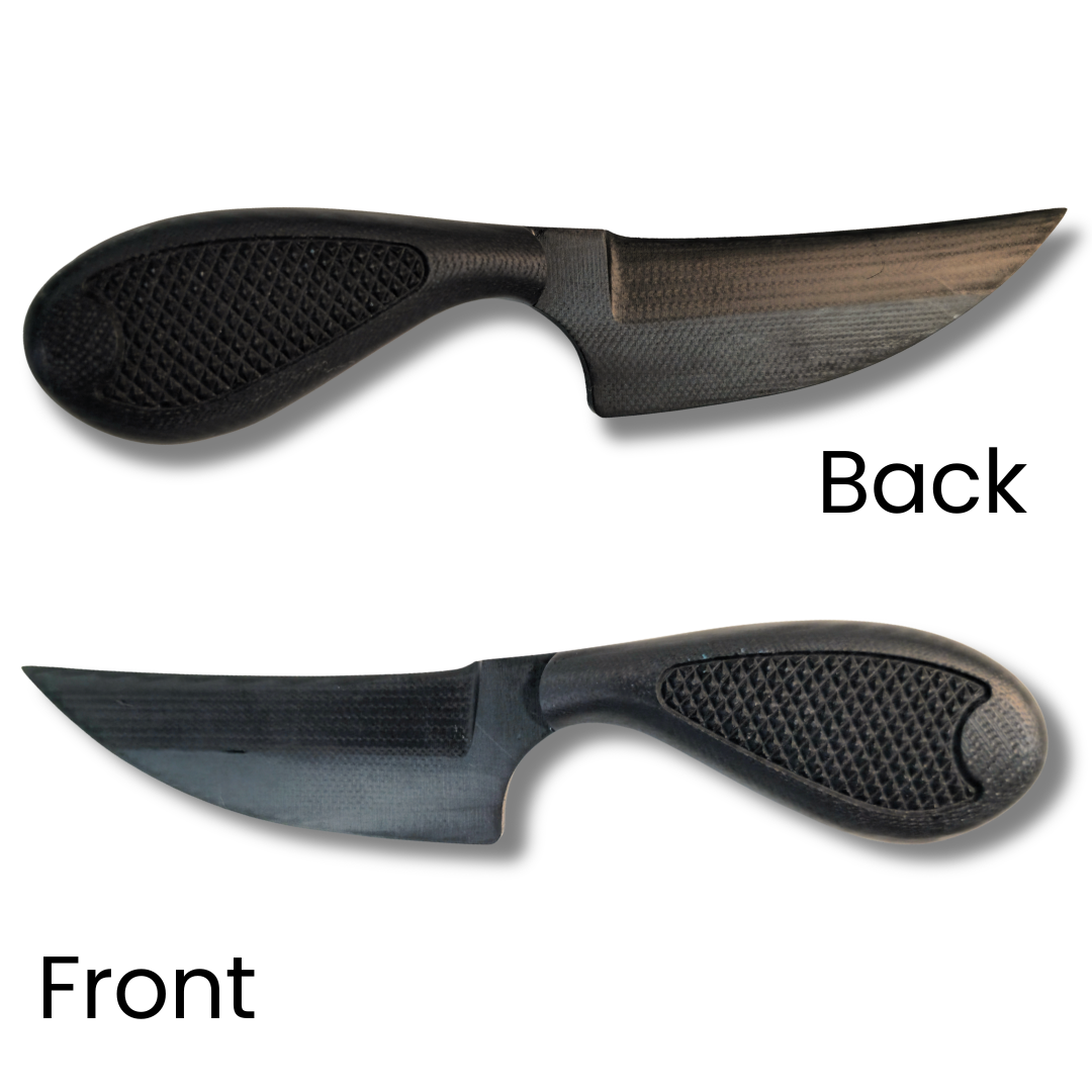 - G10 Composite Blade — Extreme impact resistance and toughness for hard-use in high-stress scenarios; reverse-edge design (approximately 2–2.5″ cutting edge) excels at slashing and hooking in clinch/entangled positions where standard blades fail.