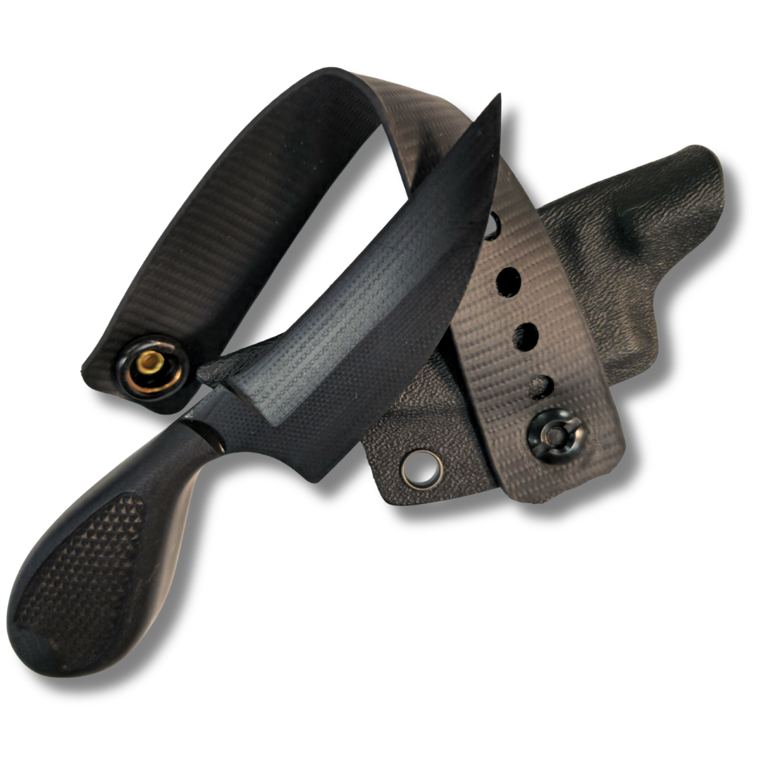 - Discreet & Versatile Carry — Includes a Kydex sheath with built-in retention “click” system; for quick access from concealment without printing. The sheath is attached to a loop and a metal button.
